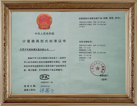 計(jì)量器具型式批準(zhǔn)證書CPA